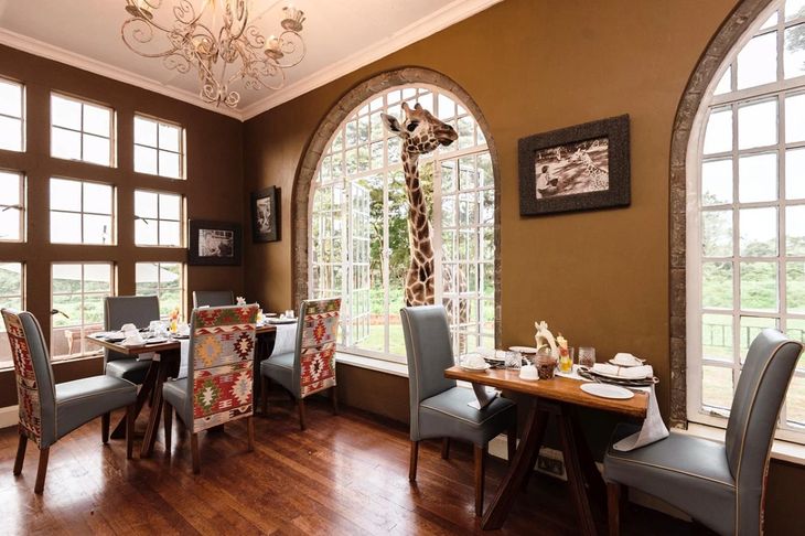 L’hôtel Giraffe Manor est entouré de 25 hectares de forêts dans lequel une grande variété de fauniques erreparmi lequel environ 12 girafes se distinguent qui approchent la résidence et entrent par les fenêtres géantes. Là, les invités peuvent les nourrirles caresseret même partager le petit déjeuner avec eux.
